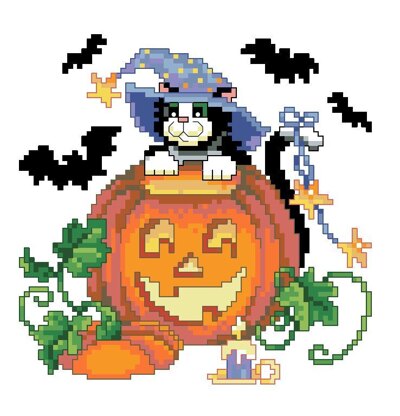 Designed by: Barbara Baatz Hillman. It wouldn't be Halloween without black cats and pumpkins. Partner this with our Spooky Kitty design for any Halloween fan.\n\n