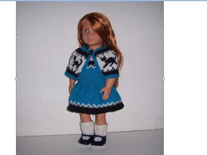 This dress and cape pattern comprises of a cape featuring cats which walk all around the cape with a 1 button fastening at the neckline. A complementing dress to go underneath with 2 easy shoulder fastenings and a simple pattern at the top and bottom of the dress A pair of all in one shoes and socks and panties complete the outfit This pattern is my own design
