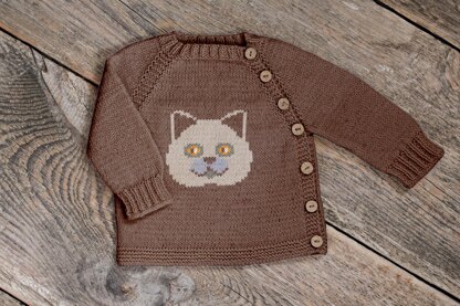 Cat Knit kids jacket Knitting Pattern, British Shorthair Face motif