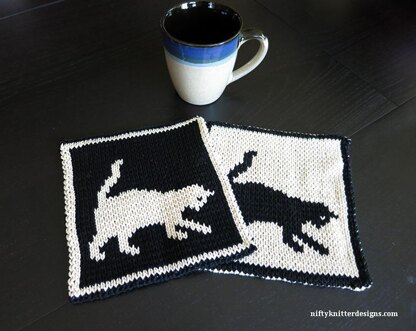 Decorate your kitchen with this cute potholder featuring a cat at play! Perfect for the cat lover. Double knit, the potholder is reversible, with opposite colors on the reverse side. Use color changing yarn for interesting color combinations or solid yarn for a more classic look.