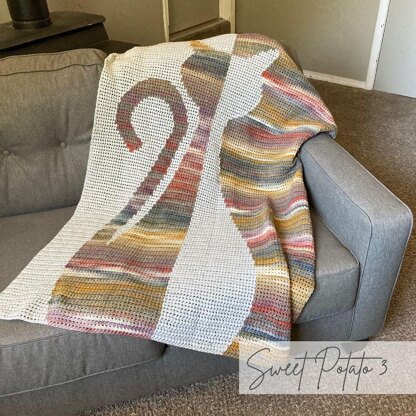 The Cat's Meow crochet blanket pattern is a fun, unique, modern crochet blanket design. This design features the silhouette of a cat that has a unique and intriguing split that has been very popular in similar designs such as my music blankets. Taking that same popular look and bringing it to animal lovers.