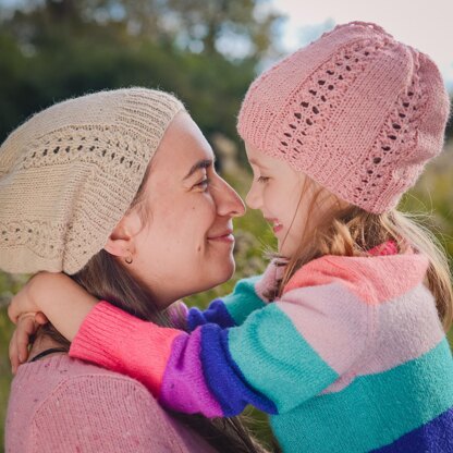 When the days are cold, I like to bundle up in some feel-good accessories. I like them to be comfortable and elegant, and what’s more elegant than a matching set? The Cedar Hat and Cedar Mittens are a must-have kit of mid-season accessories. This simple beanie is worked mostly in stockinette stitch. It is embellished by a lace pattern in the form of columns, reminiscent of the tall cedar trees, taking roots at the beginning of the ribbing. The Cedar Hat is worked in the round, from the bottom-up, starting with a brim made by alternating ribbing and lace. The lace pattern continues on the body, alternating with stockinette stitch. On the top of the hat, the lace columns are merged together, forming a star-shaped pattern at the top of the crown.