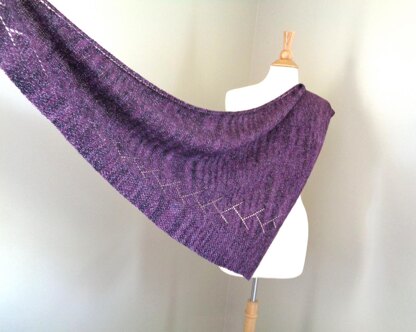 Construction: Shawl is worked from side to side beginning at the thin point and increasing in stitch pattern to wide end and completed with short row shaping.