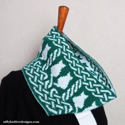 Surrounded by beautiful Celtic knots, the paired cats in the Celtic Cat Cowl intertwine their tails to join in the expanding knotwork. Celtic knot designs have long been featured in knitted garments and accessories, and this reversible cowl is perfect for a love of cats with an artistic flair!