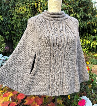 A cosy but classy poncho with comfortable front slits for ease of movement. This design is worked on 2 needles in four sections. The main stitch is moss stitch, with a gorgeous big, bold Celtic panel on the front and back. All four sections have neat stocking stitch side edges incorporated into the pattern. Finished off with the mock effect "rouleau" neckband for a really goodlooking poncho. I would recommend mattress stitch for a really neat finish. Worked bottom up and with full written instructions.