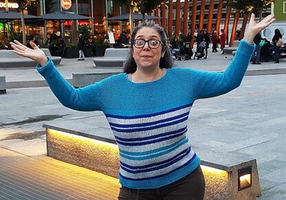 Cerchi nell’acqua (water rings) is a top down sweater with modified drop shoulder. While top down construction is usually associated with raglan sweaters, it is fairly easy to built any type of sweater with this method. Drop shoulders and modified drop shoulders are created by casting on first the back and front sections and knitting downwards to the end of the sleeve opening, then the sleeves are picked up along the edge and knitted downwards in the round and the body is knitted downwards in the round as well. Also, in this pattern the sleeves are shaped along the outer side, to grant better vestibility.
