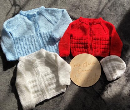 Our Chad Baby pattern contains knitting instructions to make a cardigan and matching hat, featuring a textured pattern to the lower half of the cardigans combined the stocking stitch to the upper parts. There are three varied designs of this cardigans pattern in three different sizes. So you get three patterns in one. It will fit back chest sizes 14-18”, which is Newborn to 12 months approx.