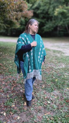 Create your own stunning poncho with this easy-to-follow crochet pattern! This Chain of Stars Poncho combines elegance and comfort, featuring the beautiful Catherine Wheel stitch with a metallic thread to give it a subtle sparkle plus wrapped stitches for texture.