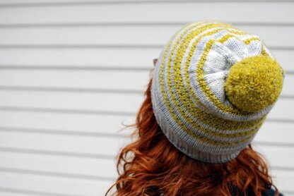 When its grey and drizzly outside a pop of colour on your hat makes all the difference, add a pom pom and you are ready to conquer even the gloomiest of winter days! This easy hat has a fun textured stripe and a relaxed fit. Knit it as written or mix up your stripes for some extra hat knitting fun. Available in three sizes.