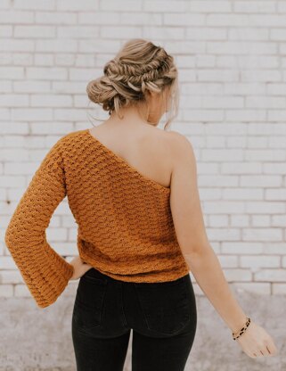 The Champagne Glow single-sleeve sweater is from my book Modern Crochet Sweaters: 20 Chic Designs for Everyday Wear.