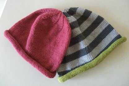 A simple, modern, unisex beanie that is quick and easy to make in either stripes or plain. Knit on 2 straight needles and then seamed so a suitable project for an inexperienced knitter.