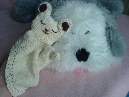 Puppet / comfort blanket. Knitted from the bottom up in two pieces (one main piece with a lining for the head).