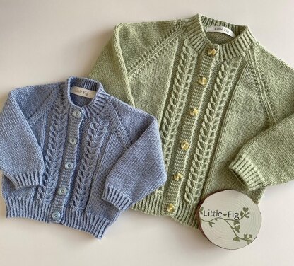 The cardigan is worked from the bottom up, with the body worked in one piece, back and forth, then divided at the armholes for fronts and back to be worked separately. The raglan sleeves worked flat and sewn in afterwards.