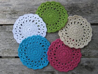 Beautiful dainty little coasters that look gorgeous on all surfaces and in all colours. Protect your surfaces, cheaply and beautifully. A quick make you could probably make in a hour. I often make coasters after a big project, great when you have 'crocheters block'.