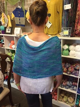 A simple, cute, asymmetrical poncho made from the top down. It can be wore several ways, #1 with the point in the front, #2 with the point off to one side of the front, #3 with the point at the back (I call this one the Audrey Hepburn way), #4 with the point off of one shoulder (not shown). Knitted at a loose gauge makes this a quick project.
