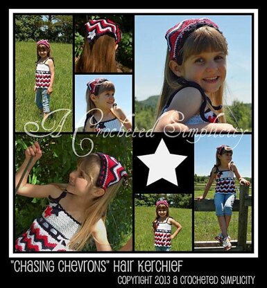 "Chasing Chevrons" Hair Kerchief is my Original Design! It is very versatile as it can be made in any color combo, made in either Child Size or Adult Size and can be made with either a "Star Applique" or "Flower Applique" option.