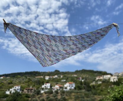 This shawl pattern was inspired by those young, carefree days, when anything was possible and the world was a stage waiting for you to take the spotlight.
