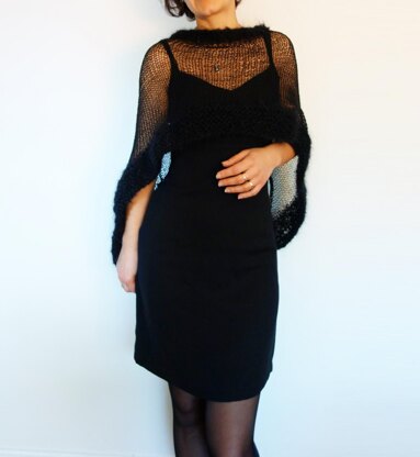 This graceful sheer poncho is worked flat in a simple pattern, on supersized needles with a combination of bulky and lace weight yarn. Flatters any figure, adds a light layer to cover bare shoulders or dress up any dress, camisole or t-shirt. Perfect as a party or wedding coverup is a must have accessory.