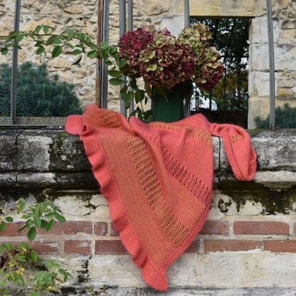 Cheriyam is a small island lying some distance from Kalpeni atoll, which itself is located about 2000 km from the southwest coast of India. Cheriyam is almost uninhabited. This speck of sunlit earth inspired to me a bright triangular shawl. Cheriyam starts from few stitches and then develops to a final frill. The frill is knitted perpendicularily to the main body.