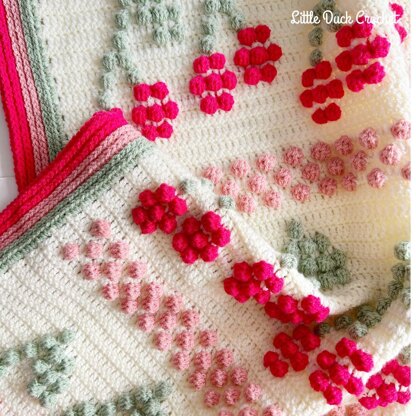 A beautiful bobbly blanket with a gorgeous cherry theme. The perfect summer project, the Cherry Blossom Blanket features colour work with contrasting bobble to make the cherries really pop!