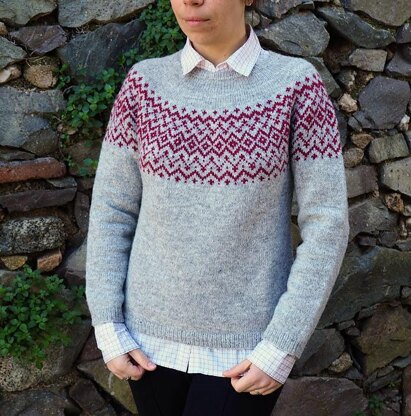 Cherry Peaks sweater is a circular yoke that is worked seamlessly from the top down. The neck is worked first, after that, several series of short rows are used for a comfortable and beautifully shaped finish.