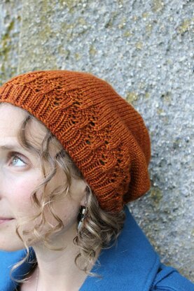 Cherry Soda/Orange Soda is that pattern. A great slouchy hat with a little lace detail, designed in either Worsted or Sport weight yarn. Easy to modify, easy to knit, and even easier to wear.