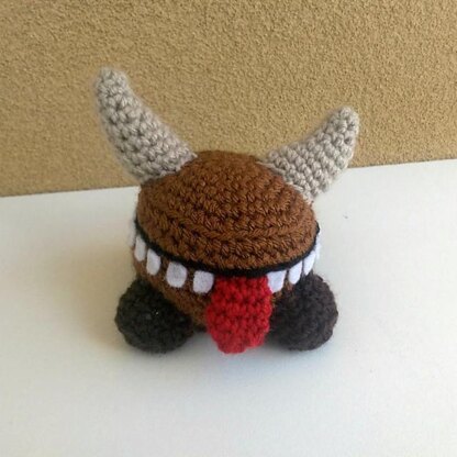 You can make him with: - 3.0 mm hook - 8ply acrylic yarn in red, black, grey, light & dark brown. - stuffing - craft glue -white felt