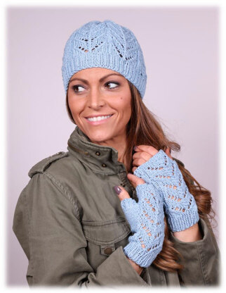Chevron Hat And Mitt Sets in Plymouth Yarn Cashmere De Cotone - 3010 - Downloadable PDF