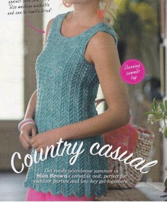 This is a pattern for a Chevron Lace Vest, originally published in Simply Knitting. It has a chevron lace all over pattern with garter stitch edges. the cast on edge is shaped as the chevron stitch starts. Photos Simply Knitting.