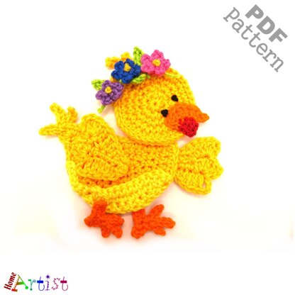 The Chick measures about 4 in. in height by 4 in. wide but the size can be varied by using thinner or thicker yarn and types of hook. Colors can be changed according to your personal preference. The pattern is designed for worsted weight yarn and uses American English crochet terms.