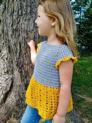 The Child Sophie Twirl Raglan is a totally girly, frilled summer top. I wanted to keep the construction easy and quick. It is a ton of fun to wear and makes a perfect addition to playtime, dress up and casual wear, All sizes are designed with a positive ease so your kids can enjoy their new top even as they grow. The frilled skirt bottom is worked in a beautiful open lace stitch for ultimate twirling fun!