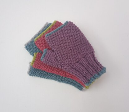 This knitting pattern is for scaled down versions of my popular Carrie mitts for ladies. Simple to make on 2 needles they take little yarn. Make with coloured trim or plain. The choice is yours.