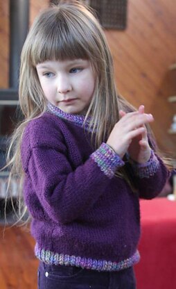 Four sizes for ages 4 yrs up to 11 yrs. A simple little loose-fitting sweater, all in stocking stitch, with a big rolled neck, without buttons, that is easy to put on. Body and sleeves are knitted from the top down on two needles, so they can easily be lengthened when your child grows. Easy to knit. Use any DK/8 ply yarn of your choice – looks great in all sorts of colours and stripes, or use multicolour yarn. This pattern is also available for younger children and babies (6 months - 3 yrs) under the name "Little Roll-neck Sweater".