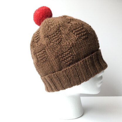 This folded brim hat has textured acorns all over. It just screams FALL.