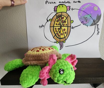 Say hello to Chipy, the pizza-turtlotl! This is the next pattern in my kids creation line, designed by a 9 year old girl who got the final product and chose his name.