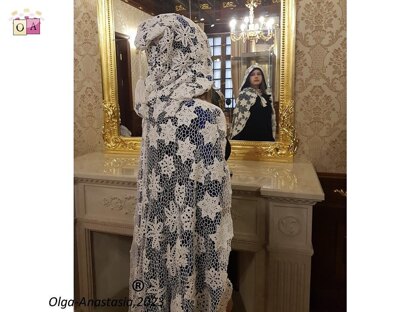 Christmas cape with hood - Modern crochet Irish lace pattern . A detailed pattern for all crochet motifs - a graphic diagram, a photo and a verbal description of each crochet row. PDF file for 103 pages Design work by Starostina Olga.