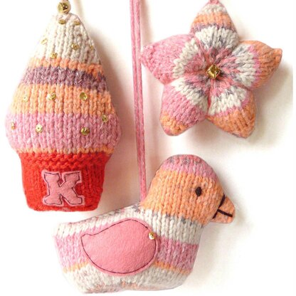 Knit a set of stripy Christmas decorations with this easy-to-follow patternThis pattern contains full instructions to knit a partridge, star and Christmas tree decoration from self-striping yarn. They look lovely hanging from the Christmas tree or lined up on a shelf, and the sequin decorations make them sparkle in the light. Suitable for even nervous knitters, they are knitted in stocking stitch on 4.5mm single-pointed knitting needles and use basic increasing and decreasing to shape.