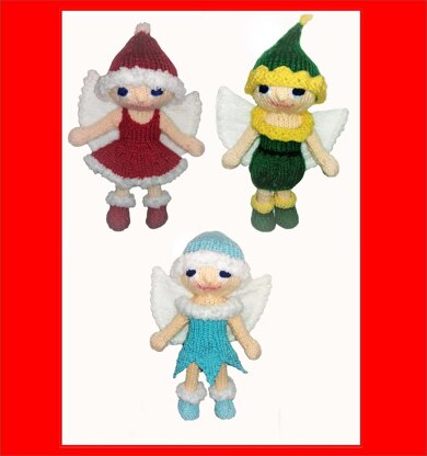 Here we have a little fairy doll that can be played with by children of all ages (no buttons or sew on eyes make it child safe). The doll stands around 20cm tall and has 3 complete outfits included. A Christmas themed Santa dress and an elf dress give the fairy a traditional feel whilst the Frozen inspired Ice fairy dress adds a contemporary twist. They also make cute decorations for the Christmas tree. All knit in DK yarn with snowflake yarn detail to the costumes on straight needles. The doll uses around 13g white DK, 10g flesh colour with oddments of blue and pink (it can be knit in any colour you choose). The dresses use a maximum of 18g of each colour DK per outfit with oddments of snowflake.