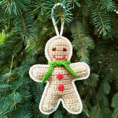 Crochet Gingerbread Man ornament pattern easy. Gingerbread Man Christmas tree decorations is made of 2 halves joined with a crochet hook.