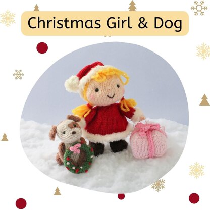 Finished size: Girl, 14cm, Dog, 6.5cm, Gift Box, 5cm The pattern consists of a girl, a dog, a mini wreath, and a gift box. The girl’s basic body pattern is the same as the sister pattern Witch Girl and Cat.