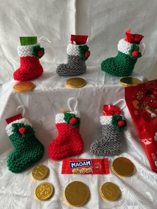 Christmas Holly Stockings bunting sweets chocolate cover, tree decoration DK knitting pattern