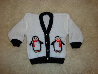 Christmas Penguin Cardigan Knitting Pattern - Baby / Toddler.