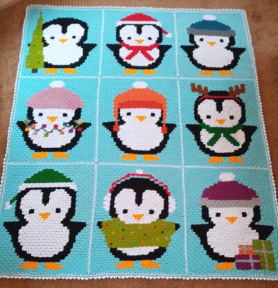Christmas Penguin Corner to Corner Blanket