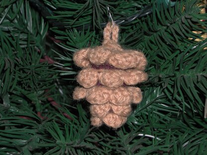 Make several of these neat little pine cones and hang them all over your tree, just like the real thing. They are a bit time-consuming to make, but well worth the effort. You can also make it as a casual ornament without the hanging loop.