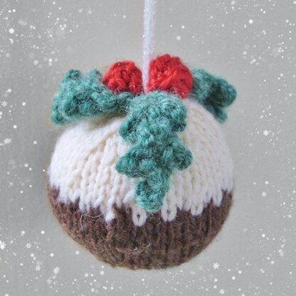 Knit this little pudding to decorate your Christmas tree. The holly topper could also be used to add a handmade touch to Christmas cards or gift-wrap. Designed by Amanda Berry @fluffandfuzz, the bauble is knitted in acrylic DK yarns on single pointed needles (not in the round). For confident beginners and above, other techniques used include casting on and off, knits, purls, increases and decreases, stranded colour-work and seaming to finish.