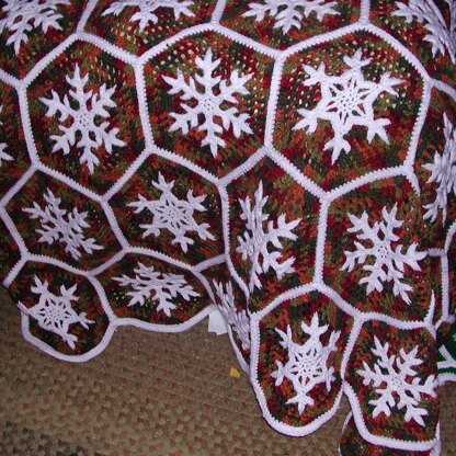 The design is truly different, due to the unique way in which I designed the border to match the slip-stitch joining of the motifs. It has two different snowflakes designed for the motifs. As well as the patterns for the hexagon motifs, there are instructions for half-motif fillers on the long edges, so you will not have those big gaps between the hexagons.