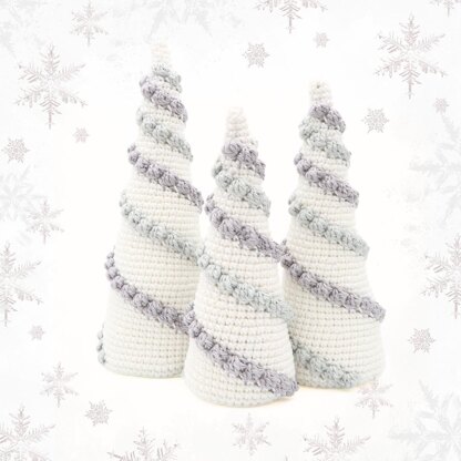 MEASUREMENTS With the yarns used in this project, the L tree measures 17 cm tall and 7 cm wide, the M tree measures 15 cm tall and 6 cm wide and the S tree measures 13 cm tall and 5.