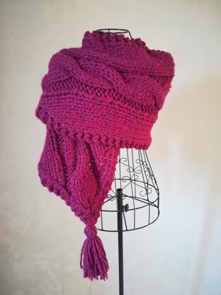 Bordeaux / Red Wine Maxi chunky scarf / stole with a cable pattern / torsades and tassels.