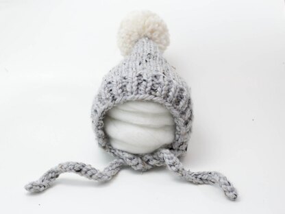 Our adorable solid pixie bonnet pompom hat is the perfect gift for your loved ones, young and old. Available in the following sizes: Newborn, 0-3 Months, 3-6 Months, 6-12 Months, 1-2 Years, 3-4 Years and 5+ Years. The hat is made with chunky Lion Brand Wool Ease Thick & Quick yarn. The bonnet looks great with or without the pompom. The side ties are crocheted while the rest of the hat is knit. If you are not familiar with crocheting, the two stitches needed are very simple to learn. An alternate option without needing to crochet is also included in the pattern.