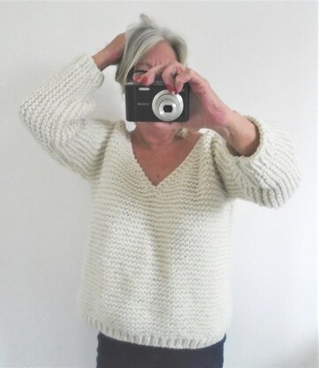 A very easy knitting pattern. Perfect for the new knitter or the more experienced knitter who enjoys an easy project. Knit in one piece, using Garter Stitch (knit every row). With rib hems to body and sleeves (knit and purl)